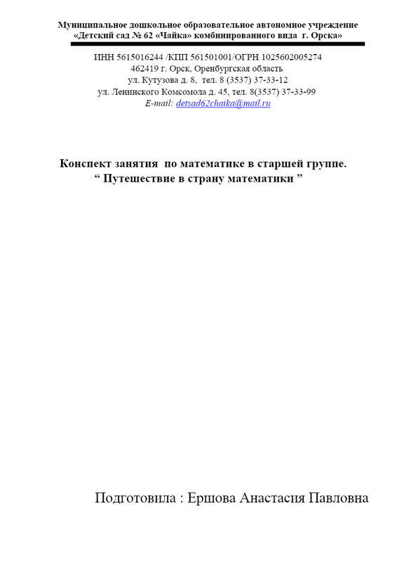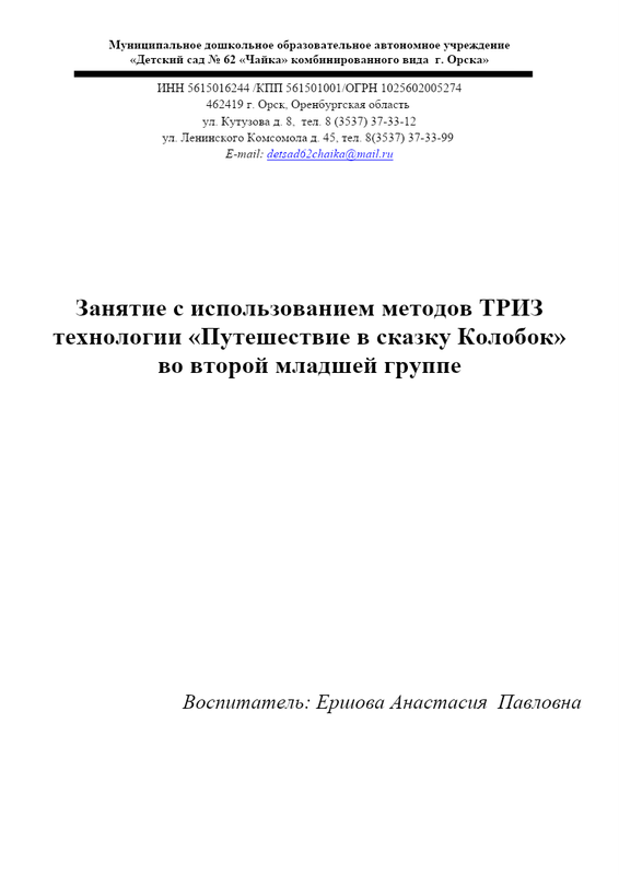 Конспект занятия Ершова АП